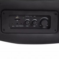 - Med drejeknapper til diskant, bas og lydstyrke