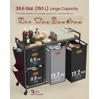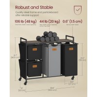 Vasketøjskurv med 4 rum 150 l sorter, rullevogn med hylder, aftagelige poser, 6 mærker, kastanjebrun/sort/duvegrå