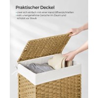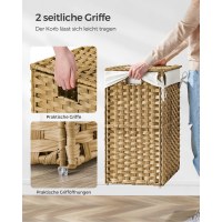 Bring varme og orden ind i hjemmet med denne smukt håndflettede vasketøjskurv i naturfarvet syntetisk rattan. Den hjælper dig med at gemme beskidt tøj af vejen og holder badeværelse, soveværelse eller bryggers pænt. Den stabile metalramme og det praktiske låg gør det let at holde styr på vasketøjet, mens sidehåndtagene giver nem flytning.