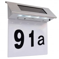 Da den er soldrevet, er denne lampe energieffektiv. Med et vandtæt kabinet i rustfrit stål er lampen vejrbestandig og holdbar. Der medfølger tre sæt tal (0-9) og et sæt bogstaver (a-g), så du kan påsætte dit husnummer.