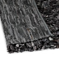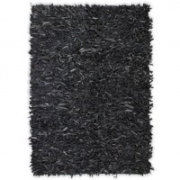 Shaggy tæppe ægte læder 190 x 280 cm grå