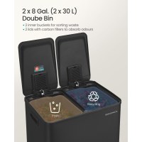 Dobbelt skraldespand med pedal, 2 x 30 l – soft close, inderspande, stål – ink black (LTB741B02)