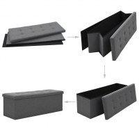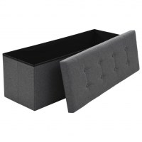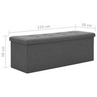 Opbevaringsbænken er lavet af MDF og betrukket med imiteret linned, som er holdbart, stabilt og behageligt at sidde på. Denne grå farve viser ikke let pletter eller støv. Den har et aftageligt sæde og har rigelig opbevaringsplads til at holde en række forskellige ting ude af syne, men inden for rækkevidde. Når den ikke er i brug, kan kisten foldes for at spare plads.