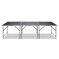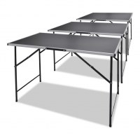 Hvert af de 3 tapetseringsborde har et stel lavet af stærkt og let aluminium og en bordplade is sort krydsfiner, som er let at rengøre. De stærke jernben gør bordssættet meget stærkt og stabilt. Disse 3 borde kan forbindes med hinanden ved brug af de medfølgende kroge. Alle 3 borde kan foldes ved transport og kan nemt opbevares, når de ikke er i brug.