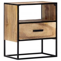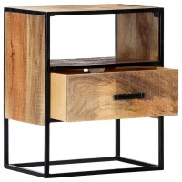 Sengeskabet er lavet af af massivt, ru mangotræ og har pulverlakerede stålben, så det er yderst stabilt og holdbart. Mangotræ er et tæt og robust hårdttræ, som har smukke brune eller gyldne striber og konturer på overfladen. Dette telefonskab med 1 rum og 1 skuffe har rigelig plads til at holde dine magasiner, bøger, samt diverse andre småting inden for rækkevidde.