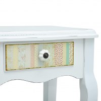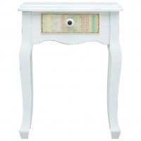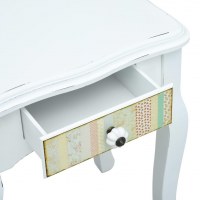 Dette kompakte skab har en letrullende skuffe, som giver rigeligt med plads til at holde mindre ting organiseret og inden for rækkevidde. Skabet er lavet af MDF-plader og fyrretræsben i høj kvalitet, og det er holdbart samt nemt at rengøre. Det dekorative mønster på skuffen fremmer den rustikke charme, og det afbarkede finish føjer til vintagestilen.