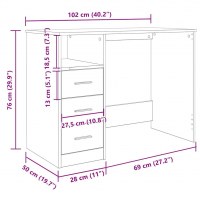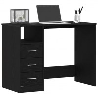 Skrivebord m. skuffer 102x50x76 cm konstrueret træ sort egetræ