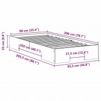 - Samlede dimensioner: 203.5 x 93.5 x 25 CM (L x B x H)