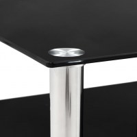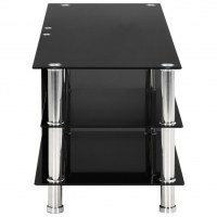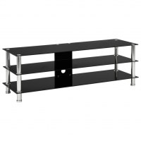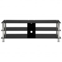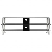 Dette tv-bord er lavet af tykt, hærdet glas og yderst holdbart rustfrit stål, så det er særdeles robust og sikkert. De 2 hylder under bordpladen kan rumme din DVD-afspiller, spillekonsol, streamingenhed, medieapparater samt andre ting og sager. Alle kablerne kan skjules takket være kabeludgangene. Den glatte overflade er desuden nem at rengøre med en fugtig klud. Vores tv-hylde er let at samle.