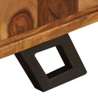 Dette HiFi-skab, som er fremstillet af massivt akacietræ med et mat finish, er holdbart, nemt af vedligeholde og vil give dit hjem et strejf af rustik charme. akacietræ er et tropisk hårdttræ, som er berømt for sine mørke årer, og som også er kendt som rosentræ eller palisander. Den smukke træstruktur gør hvert af vores TV-skabe unikt og en smule anderledes. Dette TV-skab står på robuste metalfødder, som også gør møblet æstetisk smukt.