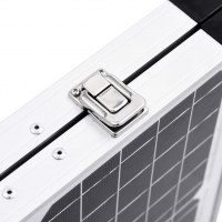 Dette monokrystallinske solcellesystem består af monokrystallinske solceller, som har en højeffektiv konverteringsfrekvens for at maksimere brugen af tilgængeligt sollys. Du kan få forskellige installationsvinkler med de justerbare ben. Korrosionsbestandig aluminiumsstel forlænger levetiden, så panelerne kan holde i årtier og modstå barske vejrelementer. Krokodillenæb for nem tilslutning til batteriet. Derudover leveres denne paneloplader med kontrolenhed med en beskyttelsestaske med håndtag, så du kan transportere det og sætte det op på få minutter.
