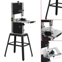 Denne praktiske båndsav har en maksimal skærehøjde på op til 120 mm og skærebredde på op til 245 mm. Den har en skærehastighed på 660 m/min og et vippebart bord, der kan justeres fra 0° til 45° for god skærefleksibilitet. Den robuste stålkonstruktion føjer til denne båndsavs stabilitet og holdbarhed. Ydermere kan stativet hjælpe med at hæve båndsaven, samtidig med at du sparer på pladsen. Stativet er nemt at samle.