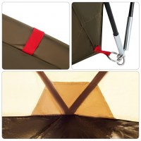 - vandafvisende design: Dette campingtelt er fremstillet af polyester med en PU-belægning, så det er vandafvisende og vindtæt. De tapede sømme forhindrer effektivt regnvand i at trænge igennem, mens teltdugen hjælper med at opretholde et tørt og komfortabelt interiør.